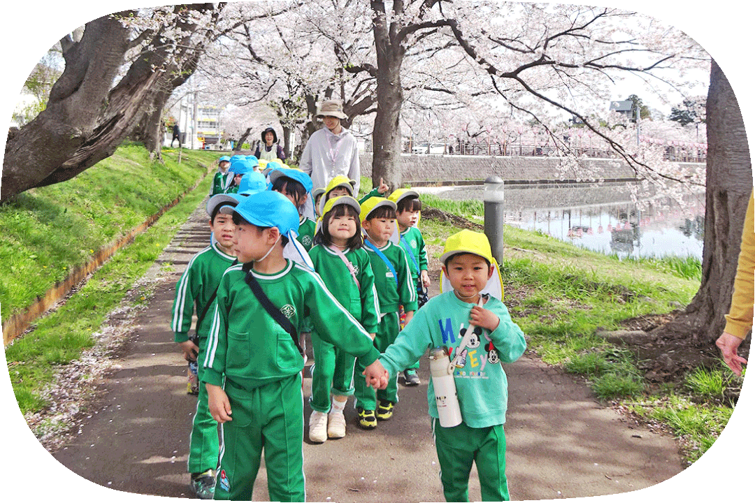 園庭に大きな桜やどんぐりの木があり、毎日の外遊びを楽しんでいます。高田城址公園にも近く、四季を通じて散歩に出かけることができます。高田の中心地ではありますが、自然に囲まれた中で過ごしています。隣接施設に特別養護老人ホーム「さくら聖母の園」があり、おじいちゃん・おばあちゃんとの交流が行われております。上越大通りに面しているので、交通の便もよく、送迎に適しております。