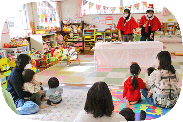 毎日遊びにいらしてください。お昼休みの時間はありません。お弁当を持参してお出でになっても結構です。また、マリア愛児園の園庭を利用し、外遊びを活発に行ってください。