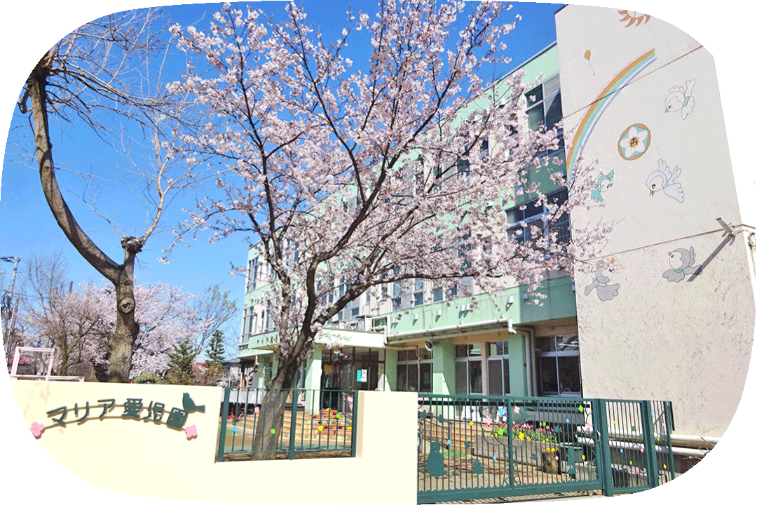 マリア愛児園は令和4年4月より「保育所型認定こども園」に移行しました。認定こども園は教育・保育を一体的に行う施設で、いわば幼稚園と保育所の両方の良さを併せ持っています。「子どもは豊かに伸びていく可能性をそのうちに秘めている。その子どもが現在を最もよく生き、望ましい未来をつくり出す力の基礎を培うことが教育・保育の目標である」を教育・保育の目標とし、養護(子どもがこども園において安定した活動と充実した活動ができるようにすること)と教育(子どもの自発的、主体的な活動をとおして健全な心身の発達を図る)健康・人間関係・環境・言葉・表現の5領域に配慮しながら、生きる力の基礎ともいえる、生きる喜びと困難な状況への対処する力を育てる土台となります。